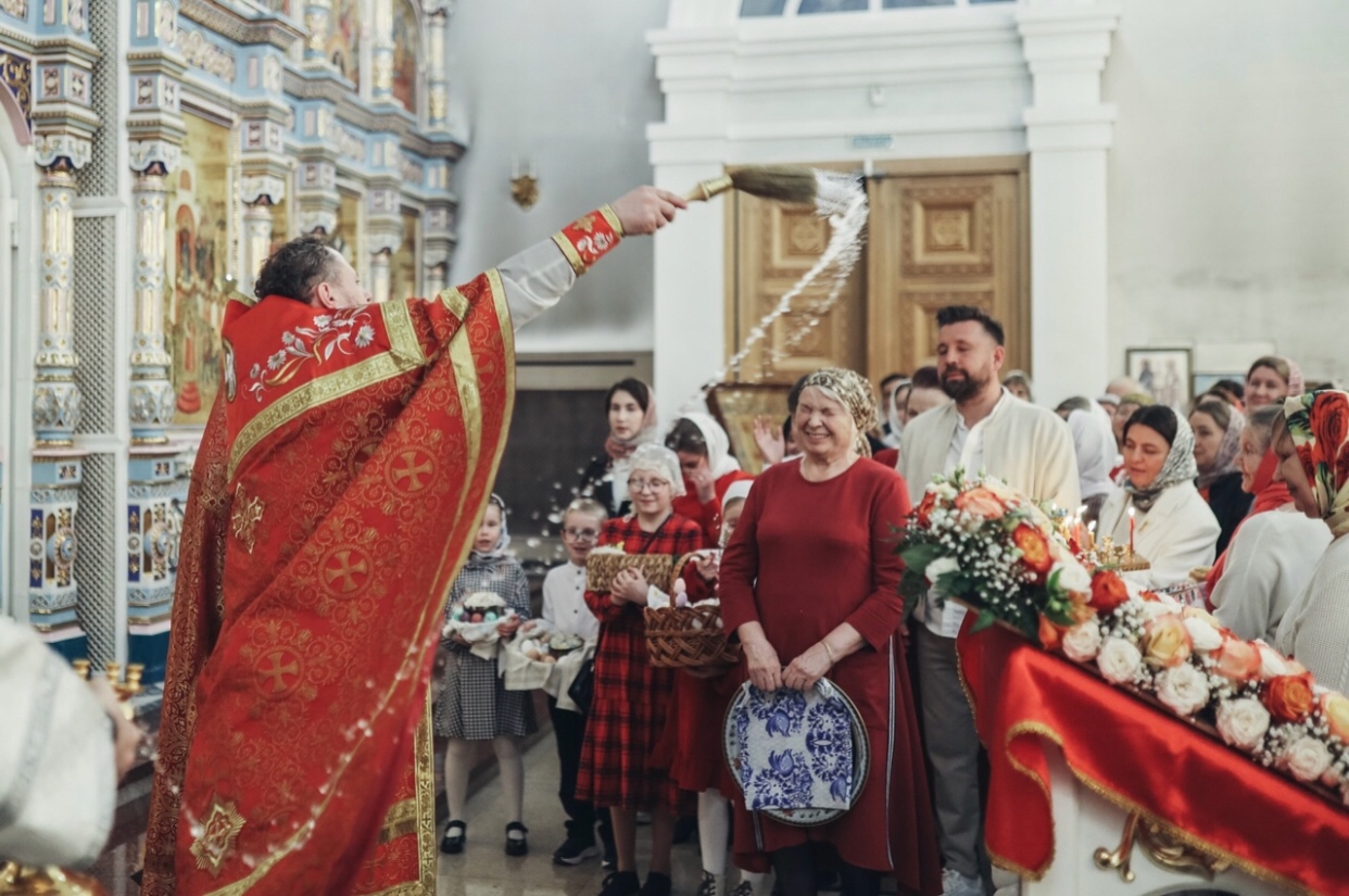 Служба завершилась освящением куличей, а затем прихожане разделили пасхальную радость за общей трапезой.